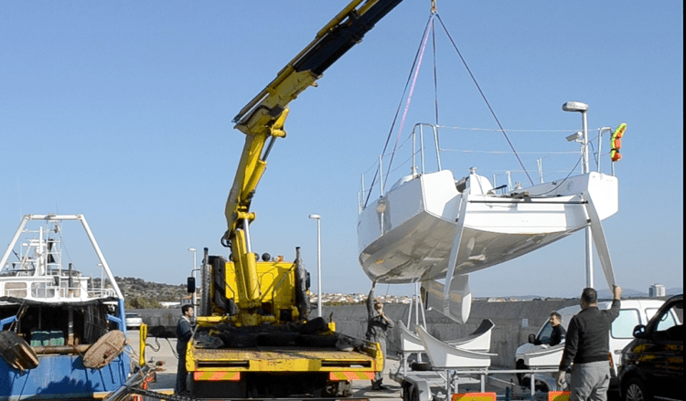 Båden vejer sejlklar med sejl og motor beskedne 1600 kg, hvoraf de 600kg sidder nede på 2 meter. Skroget er designet super effektivt. Chinen (knækspantet) går i næsten hele bådens længde for at give max vandlinjebredde og skrogstabilitet – bemærk at båden med 2,55 m max bredde er forholdsvis smal. De forreste meter er fyldige for at give god opdrift når der planes. Agterud, rundes bunden harmonisk, faconen ligger godt til krængning op til ca 20 grader, og hækken er helt åben. Dobbeltrorene sørger for at der altid er “fat i vandet” med et effektivt ror-profil. Sådan skal en moderne planende skrogform se ud, man ser det tydeligst nedefra når båden kranes – hydrodynamik handler jo om det der sker under vandet..